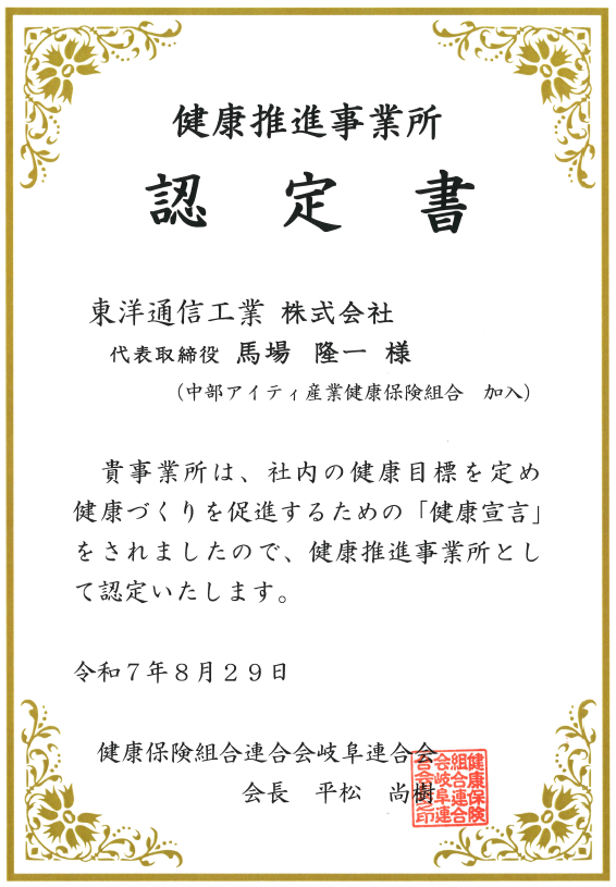 健康経営の推進により社員一人ひとりが健やかに力を発揮し、自己実現と企業の持続的成長を同時に実現してまいります。